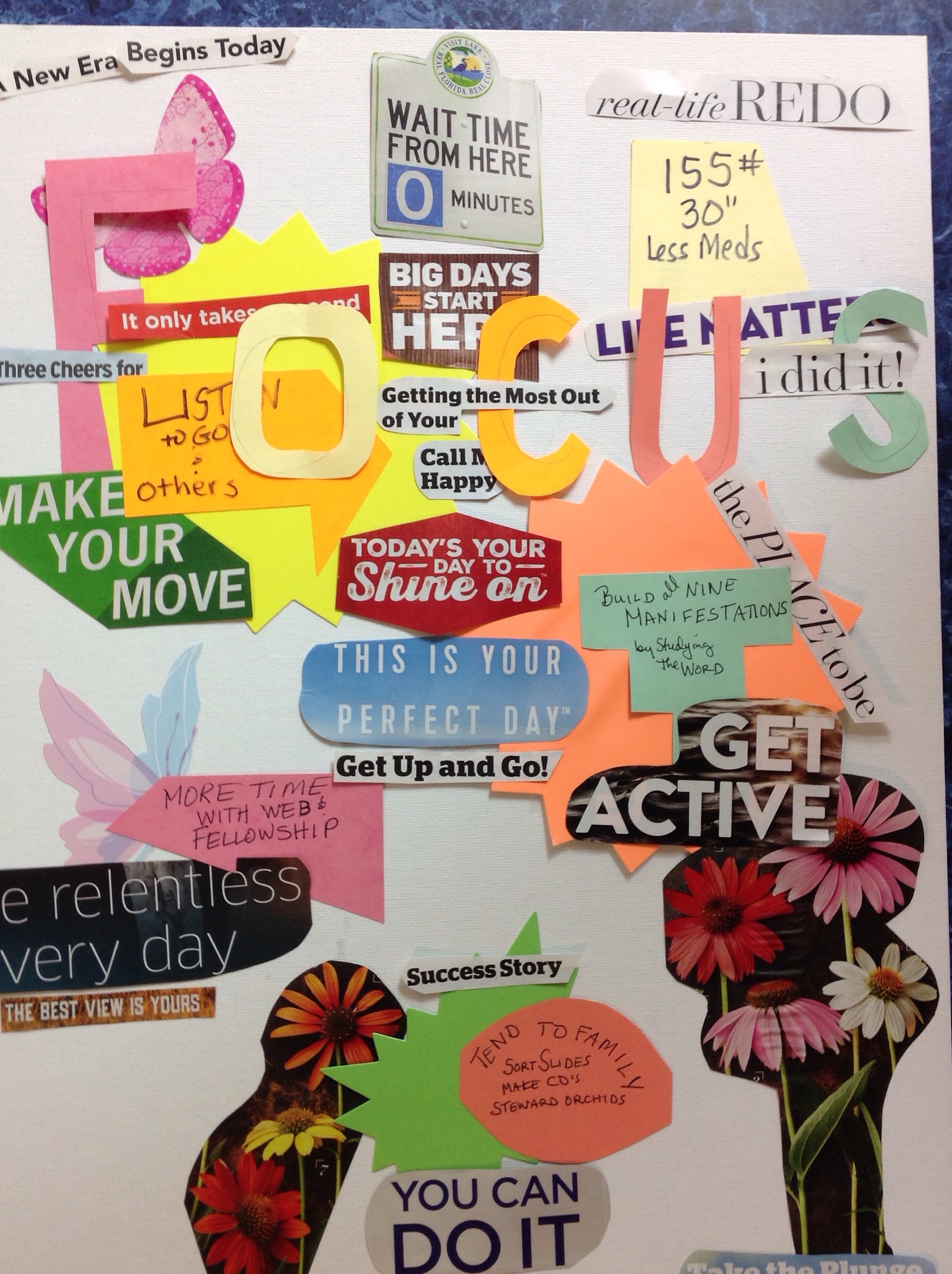 The teacher inspired us with, “Believe for the impossible.” Her biblical reference was Matthew 19:26. We talked about ways we can resist the adversary in our daily lives, and how that can be a part of your goals. Later, with reflection from our fellowship, goals emerged as I thought, prayed, and listened quietly to the Father. My one reoccurring thought was, “What has God asked me to do?” Finally, five goals emerged. I wrote them on cards and attached them to my vision board. I didn’t stop there.