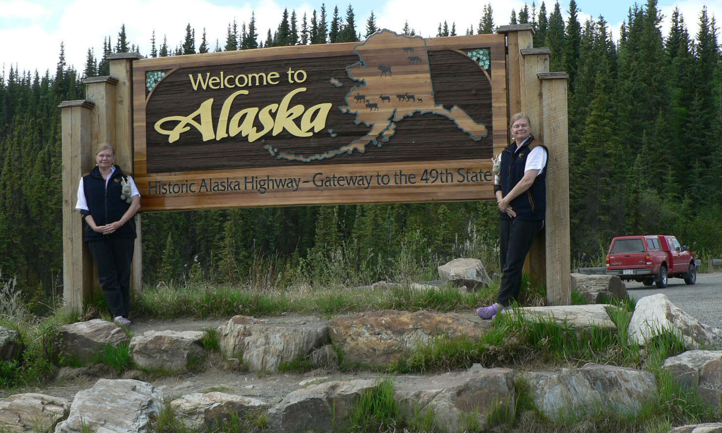 Welcome to Alaska, Alaska Highway August 4, 2014 by harrisrl1998 Leave a comment It took us 10 days from Buffalo to reach this sign. See the red Ranger in the background. This highway is one of two roads into the main part of Alaska. The other is a gravel road further north.